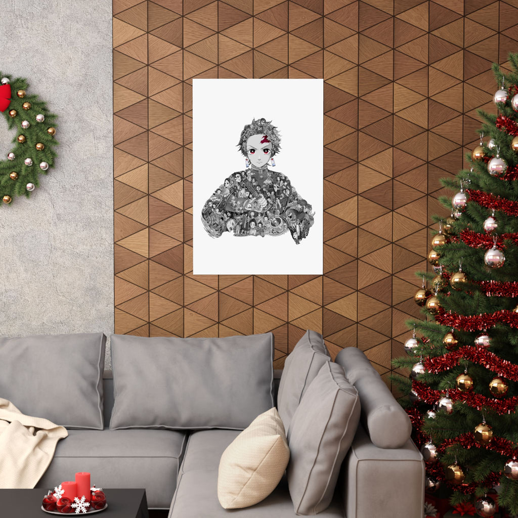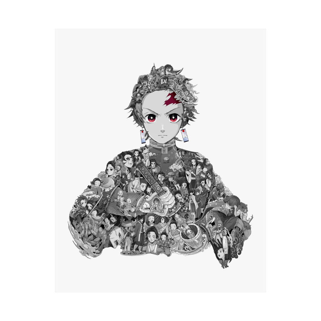 TANJIRO BLACK & WHITE POSTER (Colored Eyes)